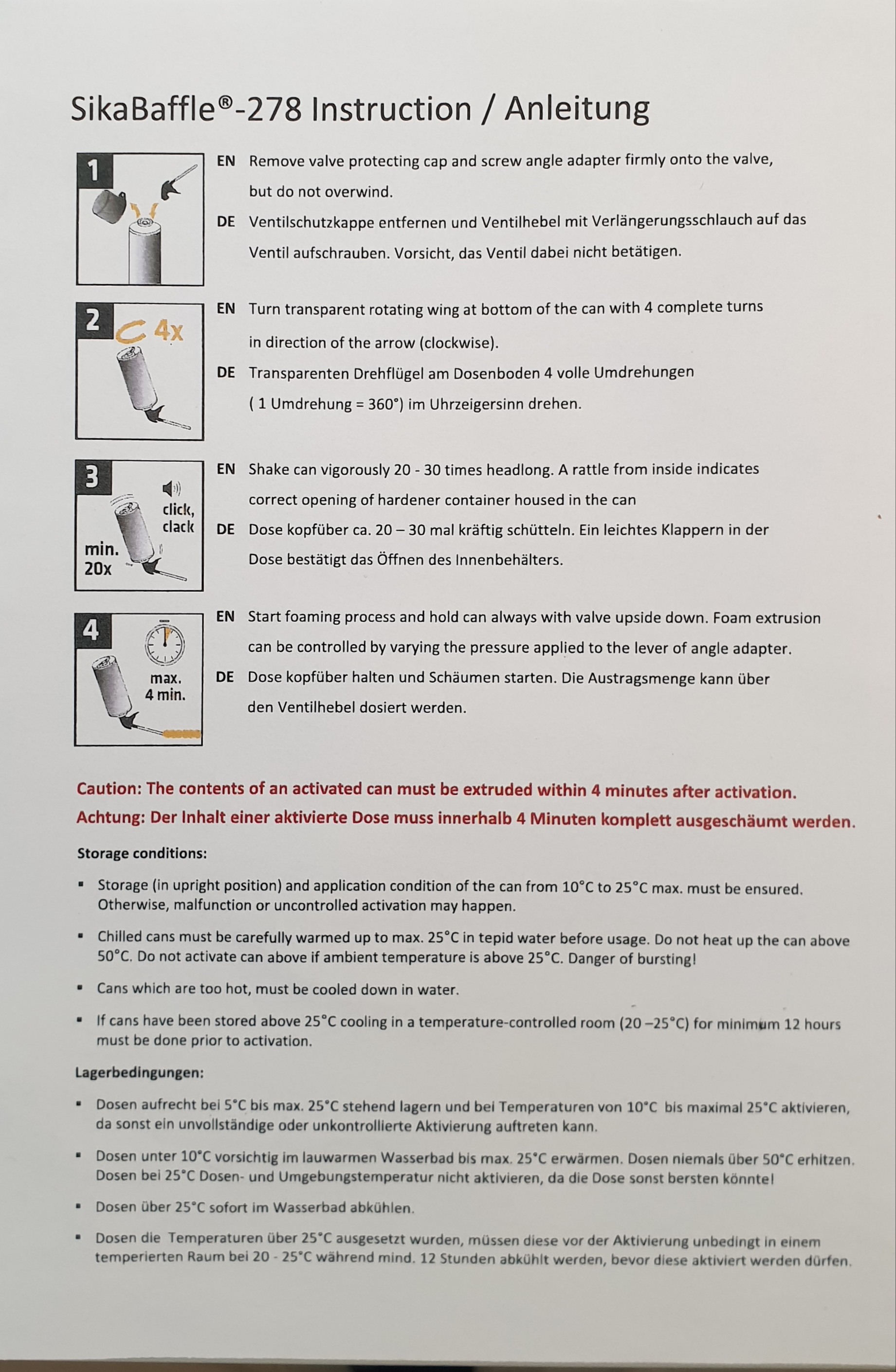 - Die Mischung der zwei Komponenten findet, ausgelöst durch ein professionelles Aktivierungssystem, innerhalb der Dose statt